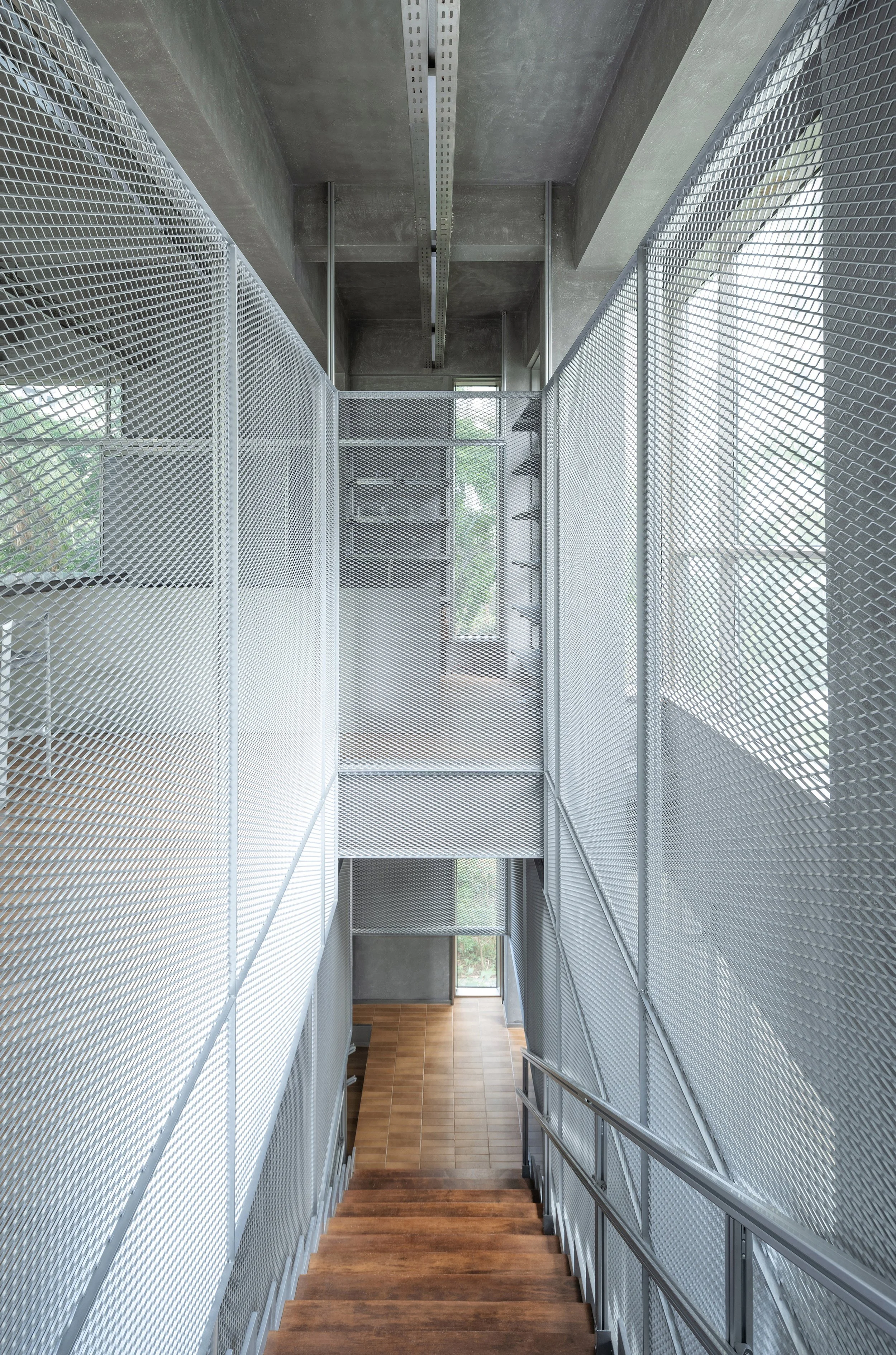Materials: brick, paint, ceramic tiles, stainless steel, aluminum profiles, corrugated aluminum panels, expanded metal mesh, solid wood